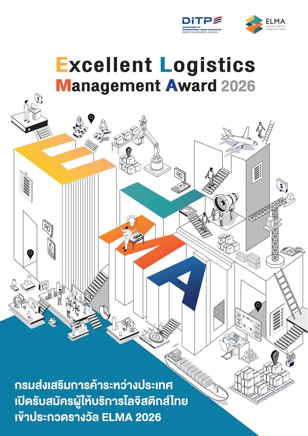 กรมส่งเสริมการค้าระหว่างประเทศ กระทรวงพาณิชย์ โดย สำนักพัฒนาและส่งเสริมธุรกิจบริการ เปิดรับสมัครประกวดรางวัลผู้ประกอบการที่มีความเป็นเลิศด้านการบริหารจัดการโลจิสติกส์ ประจำปี 2569 (Excellent Logistics Management Award 2026) หรือ ELMA 2026 ตั้งแต่วันนี้ ถึงวันที่ 30 เมษายน 2569