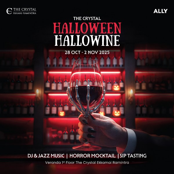 ศูนย์การค้า เดอะคริสตัล เอกมัย–รามอินทรา ชวนสายไวน์ สายคราฟ และคนรักบรรยากาศสุดเก๋ มาสัมผัสความสนุกในค่ำคืนแห่งความหลอนสุดหรู กับงาน “Halloween Hallowine” ภายใต้คอนเซ็ปต์ “วิหารแห่งท่านแดร็กคิวล่า” ที่รวบรวมไวน์คุณภาพเยี่ยมจากร้านค้าชั้นนำกว่า 100 รายการ อาทิ Ciao Pizza, Valentino, Cellar, Playlist และ Godfather ให้คุณได้เลือกจิบและช้อปแบบเอ็กซ์คลูซีฟ พร้อมสัมผัสความผ่อนคลายท่ามกลางเสียงดนตรี Jazz และดีเจสุดชิค ในวันที่ 28 ตุลาคม – 2 พฤศจิกายน 2568 ณ บริเวณ ลานกิจกรรม Veranda ชั้น 1