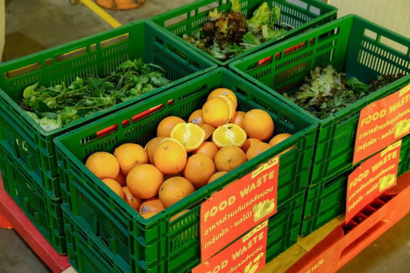 · ปลายน้ำ สำหรับอาหารที่ยังมีคุณภาพและบริโภคได้ จะถูกนำไปใช้ในโครงการ “กินได้ไม่ทิ้งกัน” เพื่อส่งมอบอาหารต่อให้ผู้ที่ต้องการ และกลุ่มเปราะบาง ในส่วนอาหารที่ไม่สามารถบริโภคได้แล้ว จะถูกส่งต่อให้เกษตรกรนำไปเลี้ยงแมลงโปรตีน Black Soldier Fly (BSF) เพื่อใช้เป็นอาหารสัตว์ และมูลของแมลงโปรตีน BSF จะถูกนำไปเป็นปุ๋ย ขยะอาหารส่วนที่เหลือจะถูกนำไปผลิตเป็นปุ๋ยอินทรีย์และน้ำหมักชีวภาพ เพื่อใช้ในการเกษตรต่อไป ทั้งหมดนี้ช่วยลดผลกระทบต่อสิ่งแวดล้อมและเพิ่มรายได้ให้เกษตรกร โดยมีเกษตกรนำร่องในโครงการนี้ อาทิ พี่น้อย ฟาร์มไก่สวยงาม หรือ “NOY CHICKEN FARM” ที่สามารถลดค่าใช้จ่ายได้กว่า 50% จากค่าหนอนนก วิตามิน และอาหารเสริมต่าง ๆ รวมถึง ฟาร์มจิ้งหรีด ศิวะพณ ฟาร์ม ที่นำนวัตกรรมการเลี้ยงหนอนแมลงโปรตีน BSF มาประยุกต์ใช้ภายในฟาร์มตั้งแต่ใช้กำจัดขยะอาหารส่วนเกิน ใช้เป็นอาหารเลี้ยงจิ้งหรีด และมูลของ BSF ยังเป็นปุ๋ยอินทรีย์คุณภาพสูงสามารถนำมาใช้สำหรับการเพาะปลูกผักเคล