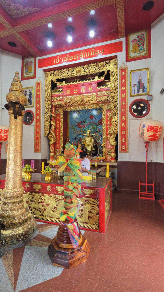 สถานที่ต่อมาที่อยากจะแนะนำ ก็แค่เดินข้ามถนนด้านข้างของศาลหลักเมือง ก็จะพบกับศาลสมเด็จพระเจ้าตากสินมหาราช มีลักษณะเด่นที่มองจากภายนอก คือศาลรูปพระมาลา(หมวกปีก) มียอดแหลม ล่างลงมาเป็นอาคารรูป 9 เหลี่ยม บันไดทางขึ้น 3 ทาง เชิงบันไดมี สัตว์หิมพาน ที่ผสมระหว่างช้าง สิงห์ และนาค ส่วนด้านในศาลจะประดิษฐานพระบรมรูปสมเด็จพระเจ้าตากสินมหาราช ที่ประทับนั่งห้อยพระบาทสวมเครื่องทรงแบบกษัตริย์ สวมพระมาลาประดับขนนก ด้านหลังมีซุ้มเรือนแก้ว 3 ซุ้ม รอบๆ มีทหารเอกของพระองค์ซึ่งจะทำเป็นหุ่นจำลองเล็กๆ ด้านหน้าของพระบรมรูปมีพระแสงดาบสีทองตั้งวางอยู่ เป็นอีกหนึ่งสถานที่ที่อยากจะแนะนำให้มากราบไหว้สักการะ ซึ่งก็อยู่ใกล้กับศาลหลักเมืองมากๆค่ะ