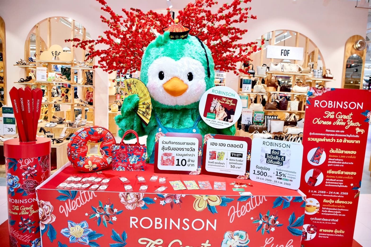 ห้างโรบินสัน ในเครือเซ็นทรัล รีเทล ตอกย้ำการเป็น “เดสติเนชันที่สร้างความสุขในทุก ๆ วันของชีวิต” ต้อนรับเทศกาลตรุษจีนปีม้า ด้วยการเปิดแคมเปญใหญ่ “ROBINSON THE GREAT CHINESE NEW YEAR” (โรบินสัน เดอะ เกรท ไชนีส นิวเยียร์) ในคอนเซปต์ “เฮง เฮง ตลอดปี” จัดเต็มประสบการณ์ความเฮงแบบครบเครื่อง ทั้ง ไอเทมมงคลในทุกกลุ่มสินค้า กิจกรรมเสริมเฮง และโปรโมชันสุดคุ้ม พร้อมลุ้นรางวัลรวมกว่า 10 ล้านบาท ตั้งแต่วันที่ 2 – 24 กุมภาพันธ์ 2569 ที่ห้างโรบินสันทุกสาขาทั่วประเทศ (ยกเว้นสาขาจังซีลอน) พร้อมต่อเนื่องความคุ้มกับแคมเปญ “ช้อป โรบินสัน ดี มีคืนเพิ่ม” ยิ่งช้อป ยิ่งได้คืนเพิ่มมากกว่าเดิม! ตั้งแต่วันนี้ – 26 กุมภาพันธ์ 2569 (ยกเว้นวันที่ 27–28 กุมภาพันธ์ 2569) ที่ห้างโรบินสันทุกสาขา รวมถึงหลากหลายช่องทางการช้อปปิ้งสุดสะดวกของห้างฯ